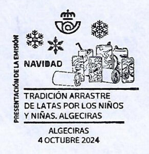 Primer día de circulación. 4 de octubre de 2024. Navidad, arrastre de latas por los niños y niñas de Algeciras en la víspera de los Reyes Magos.