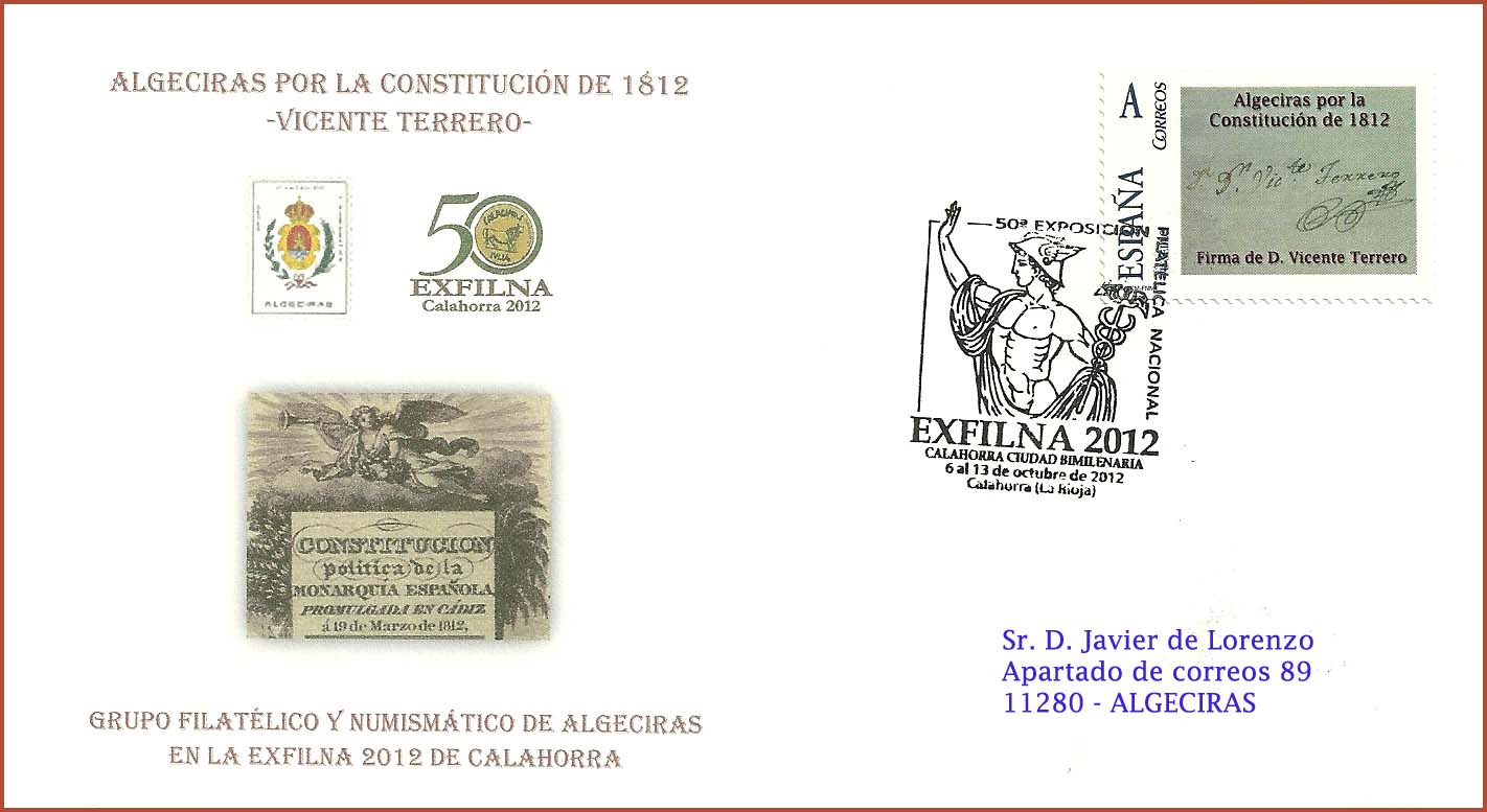 El pasado 7 de marzo tuvo lugar en la sede del Grupo Filatélico y Numismático de Algeciras la inauguración de la Exposición Filatélica social «Sellos pre-obliterados -2- de nuestro presidente José Carlos Jiménez Mombiedro. Como en anteriores Exposiciones, el Grupo ha editado una tarjeta conmemorativa del Evento. La misma fue matasellada con el matasello turístico de Algeciras, ocupando ya un lugar destacado en nuestra colección de postales.